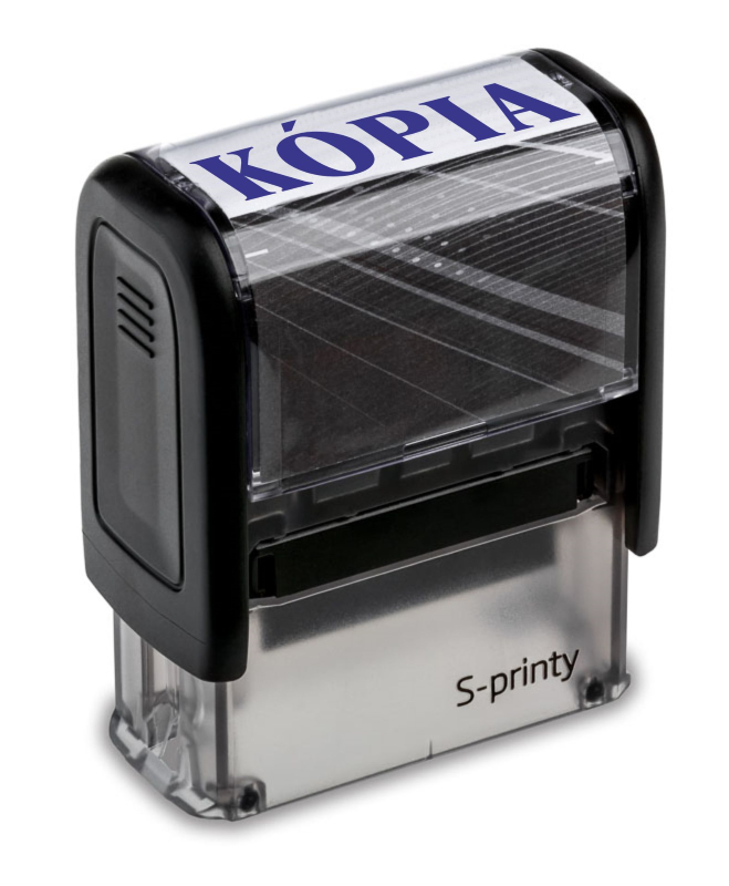 Ukázka otisku 1:1 S PRINTY 4911/SK "KÓPIA" Rozměr otisku: 38 x 14 mm Běžná cena: 224 Kč Vaše cena: 213 Kč Vložit do košíku Samobarvicí razítko s textem. Příklad otisku 1:1